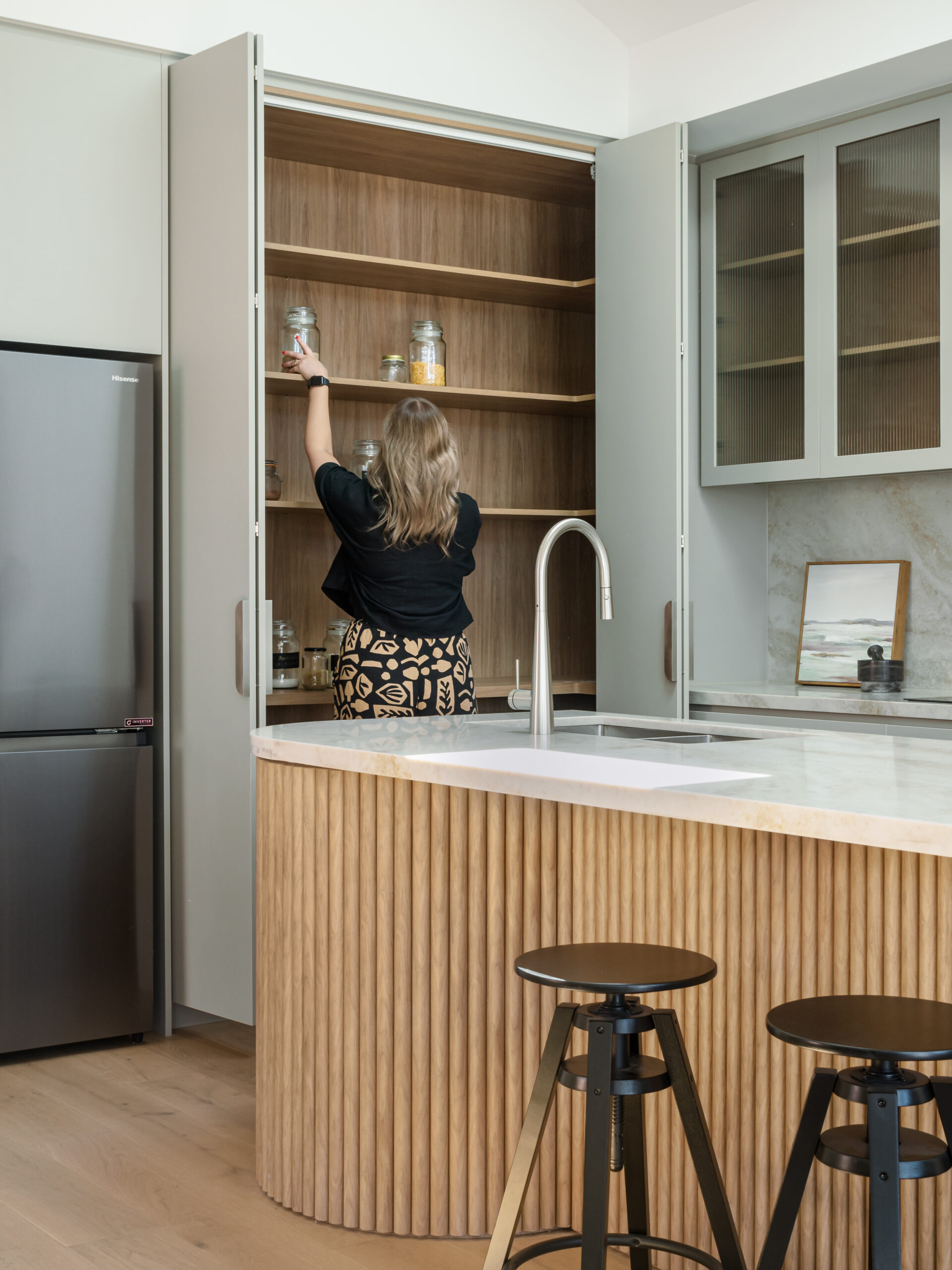 Kitchen design is all about flow. When we’re designing kitchens, we look at how you actually use the space. Where do you prepare food? How do you entertain? Do you need storage for appliances or hidden solutions to keep benches clear? Small details like drawer organisation, task lighting and bench depth can completely change how enjoyable a kitchen is to work in.